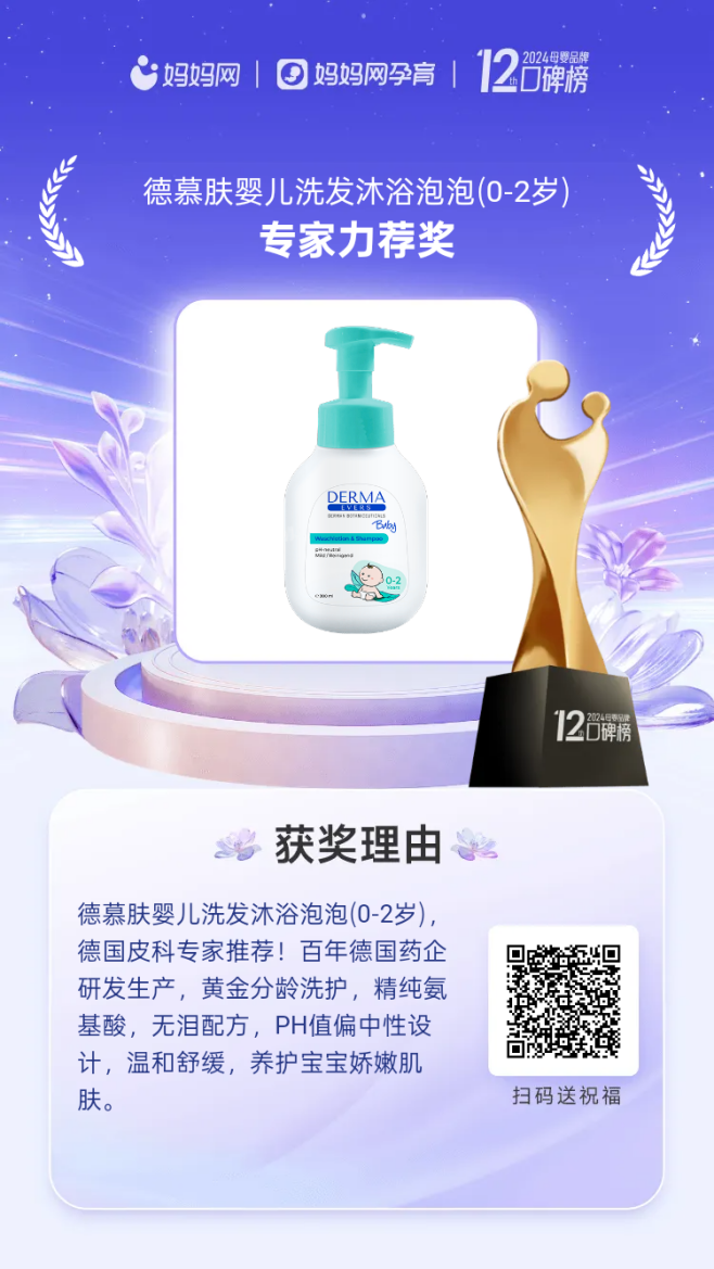 德慕膚憑借其卓越的產(chǎn)品品質(zhì)和科學(xué)的護(hù)膚理念,在專(zhuān)業(yè)領(lǐng)域獲得多項(xiàng)榮譽(yù)。2023年,品牌獲得德國(guó)皮科協(xié)會(huì)Excellent評(píng)級(jí)認(rèn)證;2024年,品牌產(chǎn)品榮獲媽媽網(wǎng)母嬰品牌口碑榜「專(zhuān)家力薦獎(jiǎng)」。
